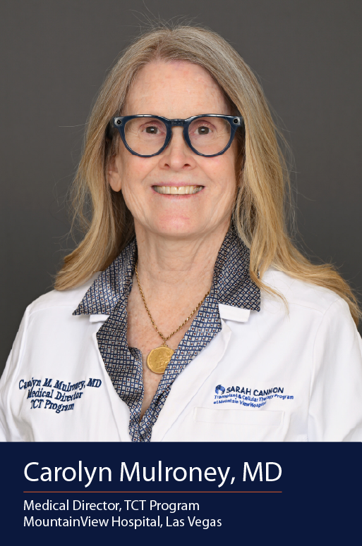 Carolyn Mulroney, MD, has walked hundreds of patients through the most devastating news of their lives. The renowned oncologist helped launch Nevada’s first bone marrow allogeneic transplant program at MountainView Hospital in Las Vegas and understands the crushing decisions patients face when they process a blood cancer diagnosis.