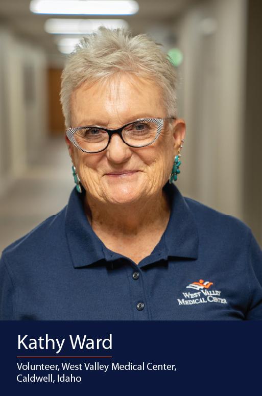 Kathy Ward’s second act as a volunteer began after she retired with more than 30 years of service to the medical community. “Kathy was one of the first people I met when I started working at West Valley, and it instantly felt like I’d known her my whole life,” remembers Kaycee Emery, director of Communications and Community Engagement. “This is how Kathy treats everyone. She is compassionate and sincere and real.”